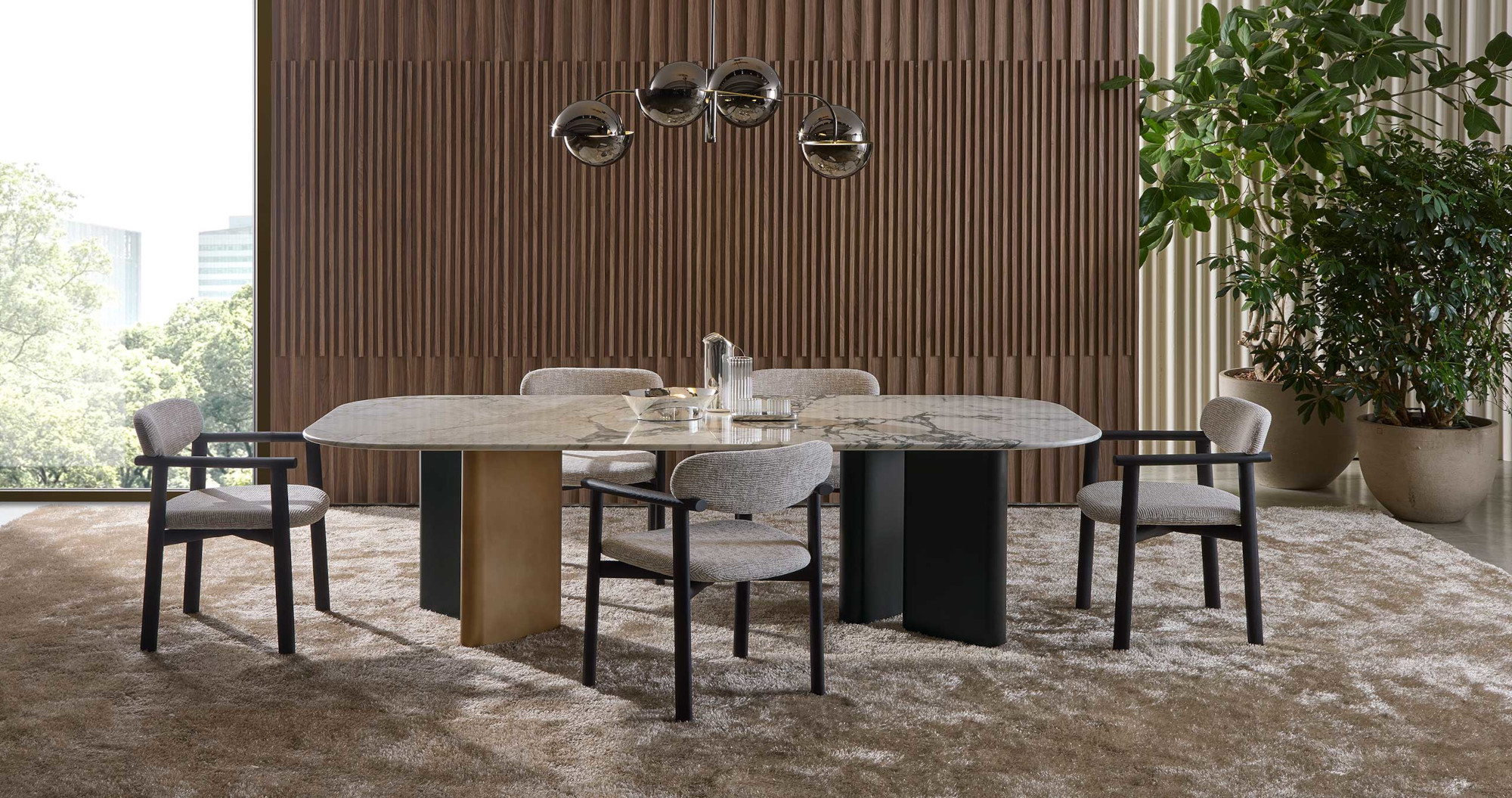 In summary, the Onno family of dining and occasional tables, with its organic shape, lightness and variety of high-quality materials, adds a touch of elegance and style to the surrounding environment, thus complementing the furniture in a refined manner.